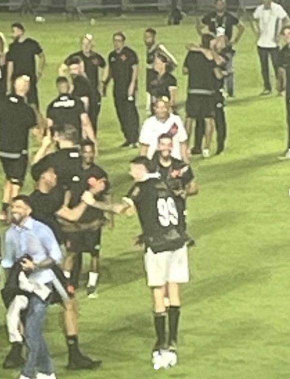 但2023年赛季,桑托斯在巴甲20队中名列第17,史上第一次降级。而达伽马却名列第15,逃过史上第5次降级的耻辱。那年12月6日,巴甲第38轮,也是最后一轮,达伽马主场2比1击败布拉甘蒂诺红牛保级成功,而桑托斯却主场1比2不敌福塔莱萨降级。比赛结束后,达伽马多名球员学索特尔多的样子,站在足球上,以表示对他和桑托斯降级的嘲讽。但达伽马球员没有索特尔多那个能力,不是自己站上去的,要别人扶着才能站上去,要别人扶着才能站得住。
